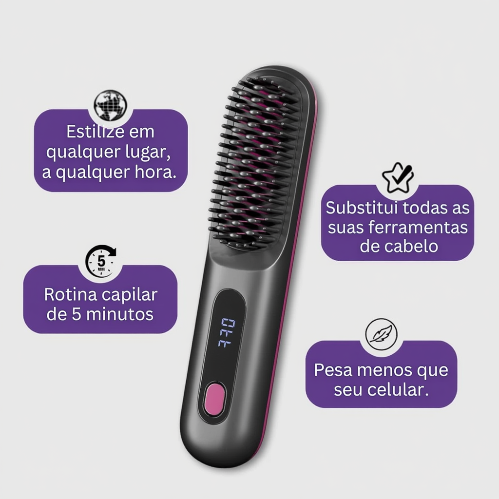 "A melhor parte é a portabilidade — posso levá-la para qualquer lugar sem me preocupar em encontrar uma saída. Também é muito mais seguro do que alisadores tradicionais, sem risco de queimaduras. Para conveniência e resultados fantásticos em qualquer lugar."